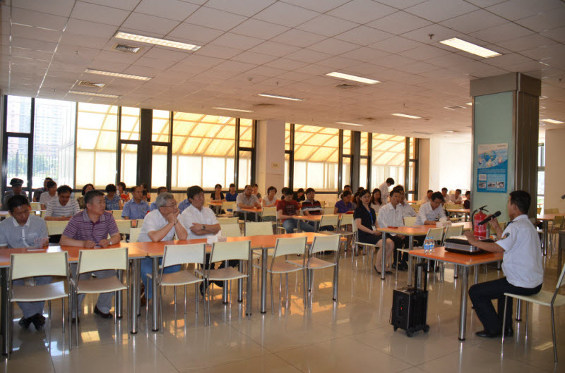 随后,北京消防宣讲中心教官进行了安全培训,通过惨痛的事故案例说明了火灾后果的严重性,警示员工要时时注意预防火灾,并结合实际讲解了火灾逃生方法、灭火器材正确使用方法。
