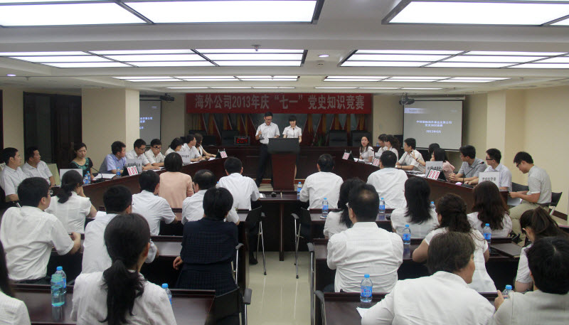 6月28日,海外公司在多功能会议室组织召开2013年庆“七一”党史知识竞赛,参加的人员有公司总经理孟庆林、海外公司副总经理高超、杨蕾,总工程师陈宝华以及支部拉拉队员约60余人。
