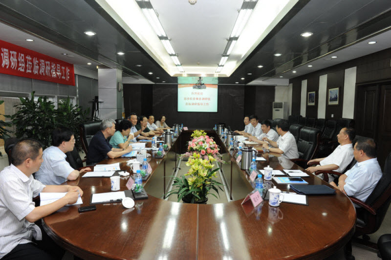 装备集团有限公司总工程师狄东仁一起迎接调研组成员,并对调研组莅临指导工作表示热烈欢迎。随后,彭建新、徐培涛,狄东仁,胡也明分别向调研组汇报了各自企业近期生产经营以及科技创新、走出去发展等情况。