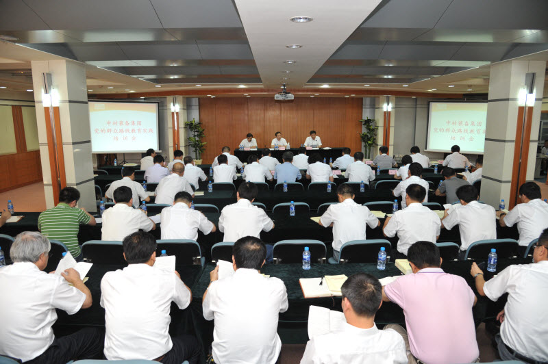 装备集团又举办了党的群众路线教育实践活动专题培训,集团教育实践活动领导小组组长、党委书记、董事长宋寿顺出席培训会议并作重要讲话,集团教育实践活动领导小组副组长兼办公室主任、党委副书记张建文作培训讲话,会议由集团教育实践活动领导小组办公室副主任、党委副书记刘龙汉主持。