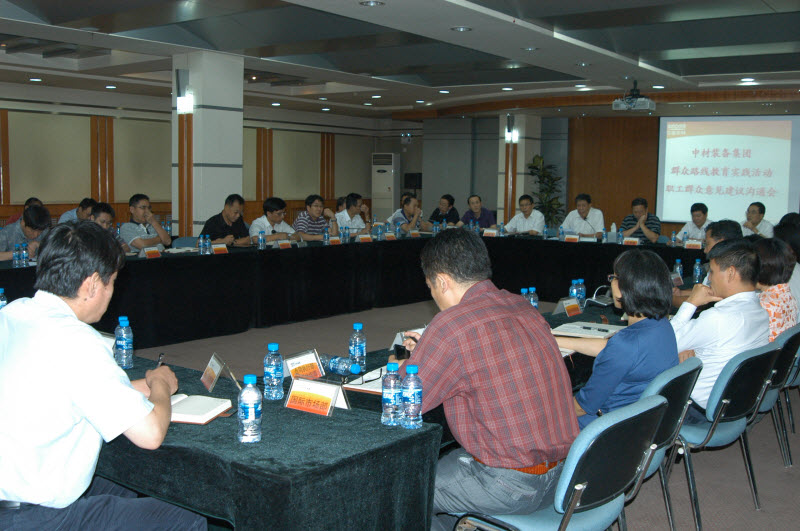 装备集团召开党的群众路线教育实践活动职工群众意见建议沟通会,装备集团领导班子成员、教育实践活动办公室成员,各部门、公司主要负责人及部分职工代表参加了会议。