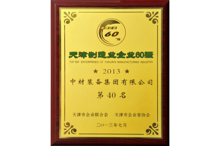 装备集团以2012年良好的经营业绩位列天津100强企业第85位,位列天津制造业企业60强第40位。