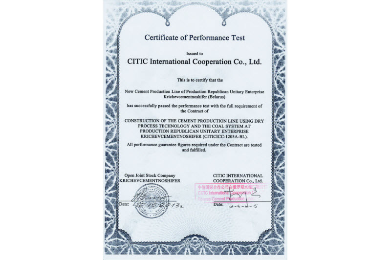 天津公司负责调试的白俄罗斯克里切夫5000t/d熟料干法生产线正式获得甲方签署的PAC证书,这标志该项目的技术服务工作圆满完成。
