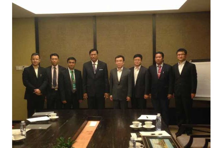 海外公司总经理孟庆林在广州会见缅甸工业部部长吴貌敏,双方就水泥行业互利合作交换意见。