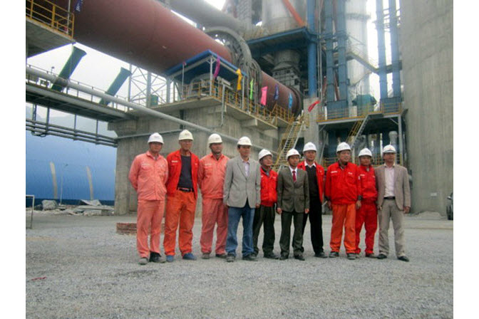 承建的越南河南VISSA 3000t/d水泥熟料生产线总承包工程顺利点火。VISSA集团总经理阿英、河南VISSA水泥公司总经理阿权、苏州非凡