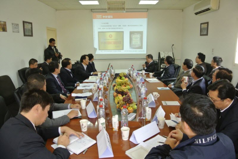 沙特城市水泥厂CCC项目现场参观考察,并在CCC项目部会议室召开了座谈会。会上,刘昊、单树林分别围绕SINOMA的主要业务、国际行业地位、品牌足迹、在建项目展示及CCC项目建设的有关情况向考察人员做了介绍。