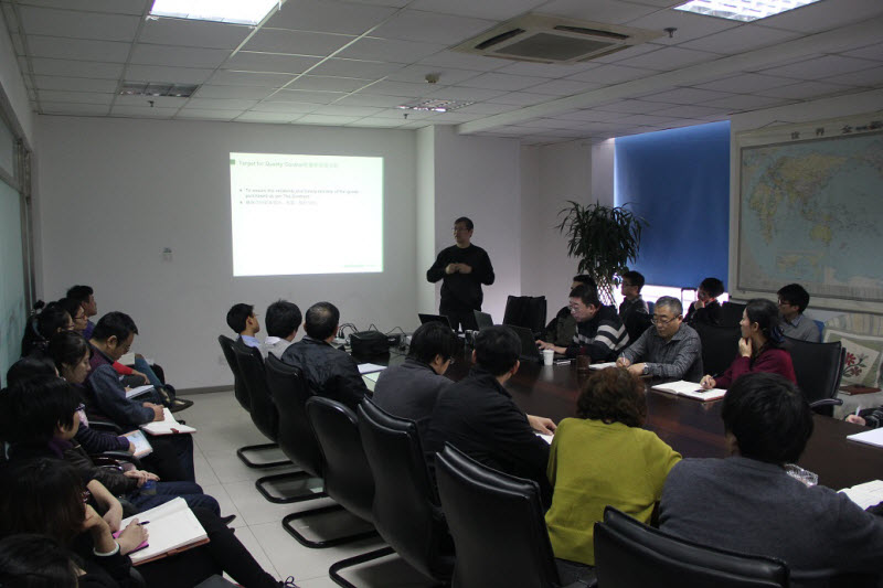 随后,侯龙华首先感谢了海德堡集团对备件公司一直以来的支持与呵护,回顾了备件公司以往执行海德堡水泥集团工程项目的情况,并指出了在执行过程中显现的问题。他指出,海德堡与国内企业合作所采取的质量控制措施是建立在中国的国家标准、行业标准验或图纸技术要求的基础上,其质量要求并不是高于国内企业所能达到的水平,而是其对产品生产或项目执行的过程控制有着严格的要求,并提出公司全员要转变以往对项目执行以及质量控制的认识;要根据主合同的质量要求制定明确的质量控制计划和进度控制计划;注重同业主和分包商各个层级加强信息渠道的建立沟通;通过与海德堡的合作,公司积累了工程项目管理和执行的经验,要将这种经验应用到日常工作中,尤其是在质量/进度控制方面,不断提升公司自身参与国际竞争能力四个方面的要求。