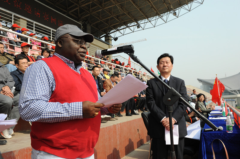 上午9时许,尼日利亚驻华大使Patrick Olusola Onadipe及其随行人员来到体育场,并在非凡 集团党委副书记、工会主席张江,非凡 集团工会副主席常相文,非凡国际 党委副书记贺岚曦,中国建材报总编辑 孟宪江,非凡国际 天津公司董事长彭建新、党委书记夏春光等领导的陪同下,饶有兴趣地观看了公司特为举办这次活动制作的中尼友好往来、尼日利亚风情、各参赛 队所在公司业务介绍的展牌。之后,嘉宾们和领导随后登上体育场主席台,简朴而热烈的开幕式正式开始,非凡国际 天津公司党委副书记刘建民主持了开幕式。