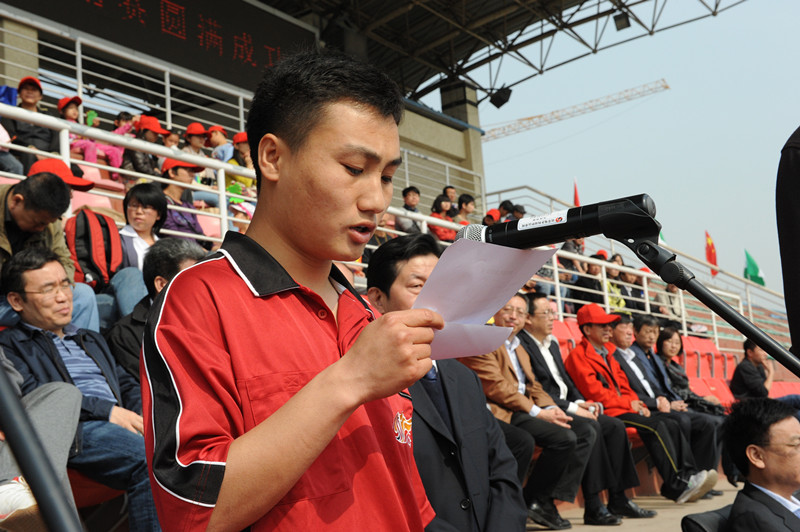 非凡 装备公司的耿爽代表参加本次足球赛的全体运动员庄严宣誓:将以积极、饱满、热情的态度参加本次比赛。在比赛中,服从领导,服从指挥;遵守纪律,遵守规则;尊重裁判,尊重对手;团结协作,勇于拼搏;友谊第一,比赛第二;赛出风格,赛出水平。