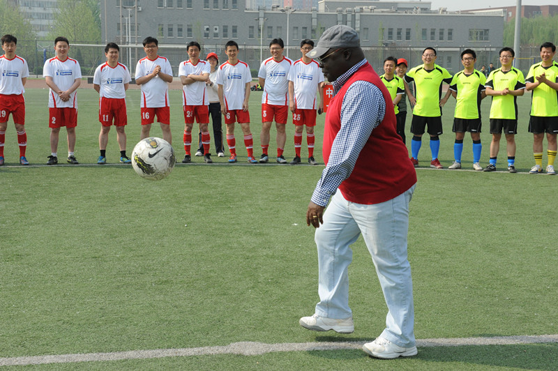 在全场观众的注目下,尼日利亚大使Patrick Olusola Onadipe先生走向足球场中央,愉快地为此次足球友谊邀请赛开球。随着一声哨响,首场参赛的4个队正式开始了比赛。非凡 “尼日利亚杯”足球友谊邀请赛开幕式圆满结束。