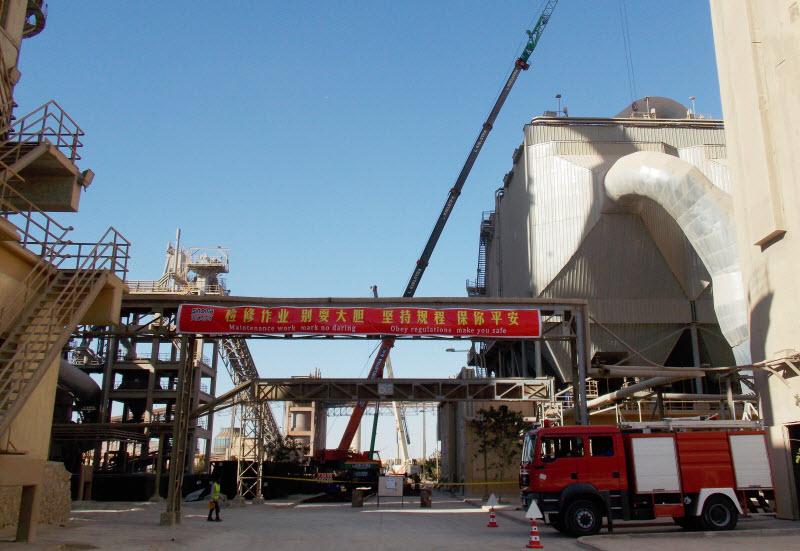 大修期间,加上中外的外包人员,现场作业人员达到200多人。针对高空作业,特种作业,吊装作业,受限空间,电气作业,交叉作业较多的特点,项目部分别对电收尘检修人员和项目部全体人员举办了专场安全培训,提高作业人员的安全意识和技能。专职安全员对作业过程进行重点监控,对大修人员的安全防护用品的佩戴及使用的临时线、起重机具、电动工具和安全带、安全绳等进行检查完善,现场制作并悬挂10幅中英文版的安全警示横幅,营造安全氛围。