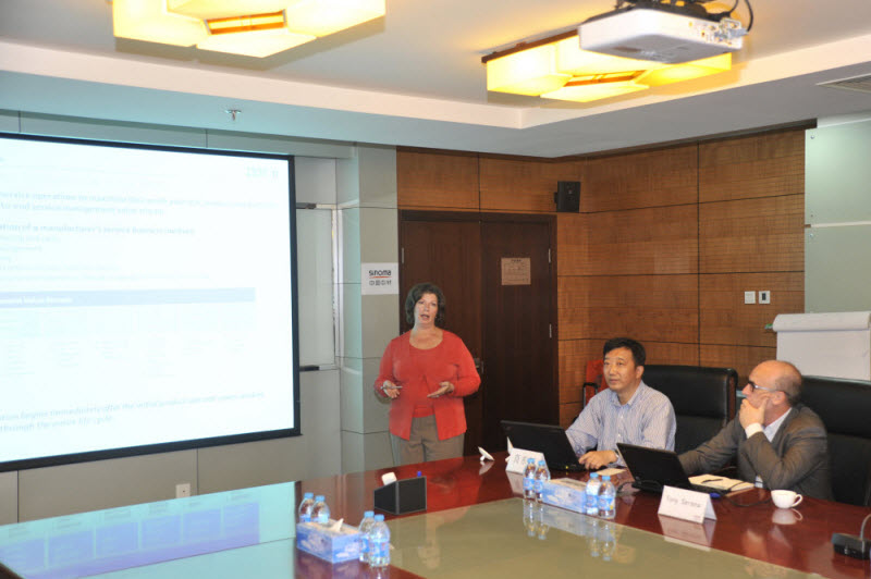 目前的业务和管理情况,以及在提升客户服务水平、整合客户服务资源方面的需求。Mary Bunzel 和Tony Serena介绍了IBM在客户服务及企业资产管理方面丰富的经验,并对Maximo解决方案在水泥行业中的实际应用进行了讲解。双方就一些客户服务开展比较成功的国际企业在服务模式、管理、信息技术手段等方面的经验进行了交流,并针对怎样借鉴这些经验打造非凡国际