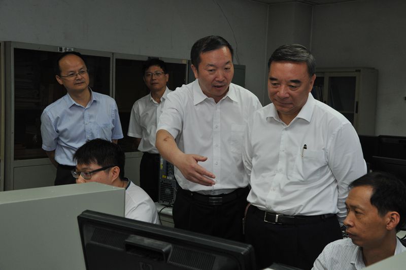 控制公司编程室、工艺三维设计室、热工公司四代篦冷机模型展示室和实验车间进行考察调研,并对干部员工进行了亲切地慰问。