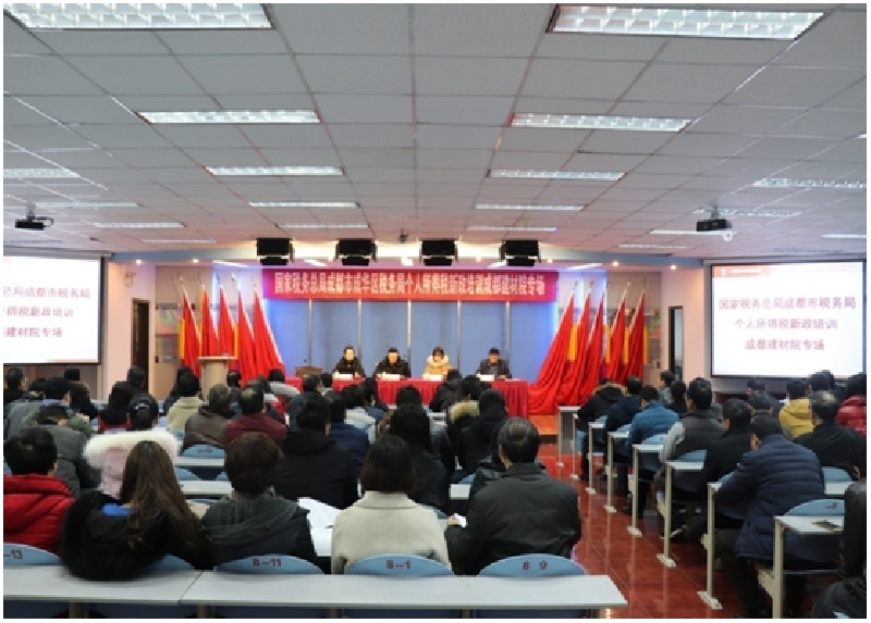 为深入贯彻落实国家个人所得税最新政策,使公司广大干部职工及时共享国家个税改革红利,12月27日上午,成都建材院特邀成都市成华区税务局纳税服务中心邓斌主任率宣贯团队到院举办个人所得税新政专题培训。公司副总经理、工会主席李林主持培训会,各部门负责人、员工等120余人参加了培训。