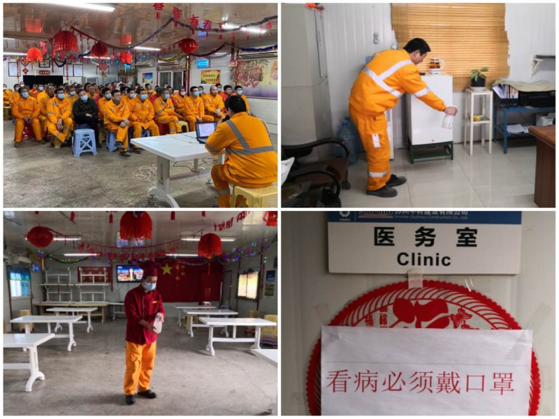 确保做到防控机制到位、员工排查到位、设施物资到位、内部管理到位。各海外项目部多措并举,全力以赴做好疫情防控工作;重点做好与客户的沟通,保障在执行项目稳步推进,克服困难,共渡难关。