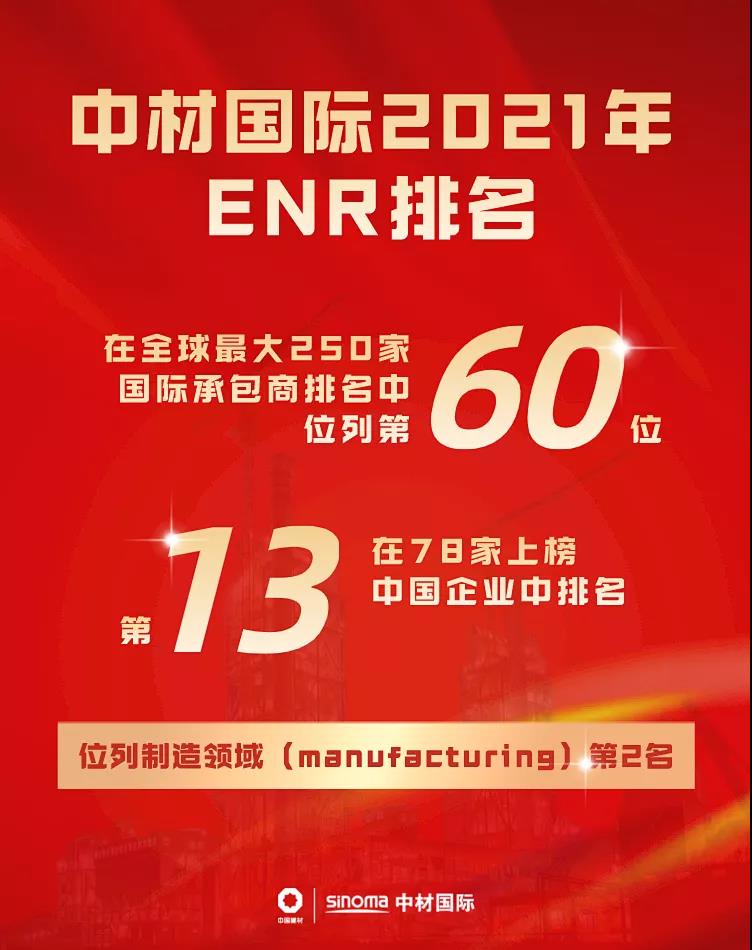 位列第60位,在78家上榜中国企业中位列第13位,在制造领域(manufacturing)十大国际承包商中排名第二。