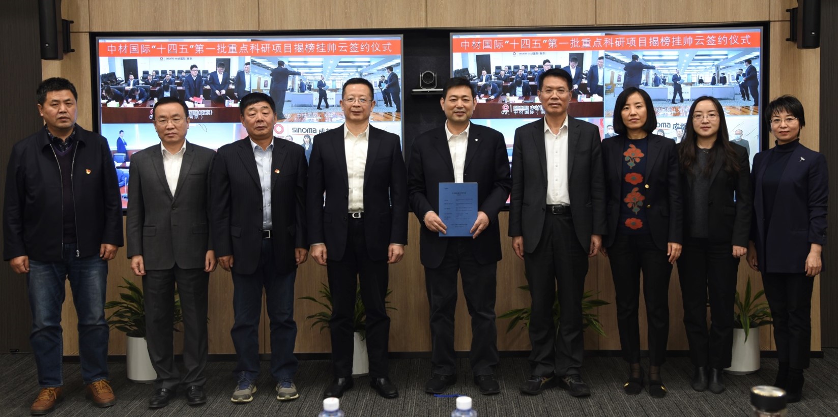 (南京)总经理刘仁越,天津水泥院党委书记陈增福,成都建材院党委书记冯艳、总经理吴宏,南京凯盛董事长、党委书记冯建华、总经理高爱国,四家单位领导班子成员、揭榜挂帅项目负责人及项目团队,以及总部各部门负责人等80人出席会议。