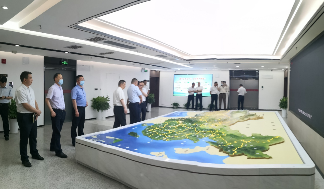 印志松一行首先参观了装修一新的公司总部、可视化中心、电子沙盘。在可视化中心,落地大屏幕集中展示了全国各地分公司的生产管理、安全管理、现场监控画面等实时动态信息,尤其是在富平分公司按照一个中心、两个平台、八大系统架构建设的数字化矿山,准确直观呈现了智能化矿山全方位、全系统、全过程的管理场景,实现了矿山管理的透明可视化。